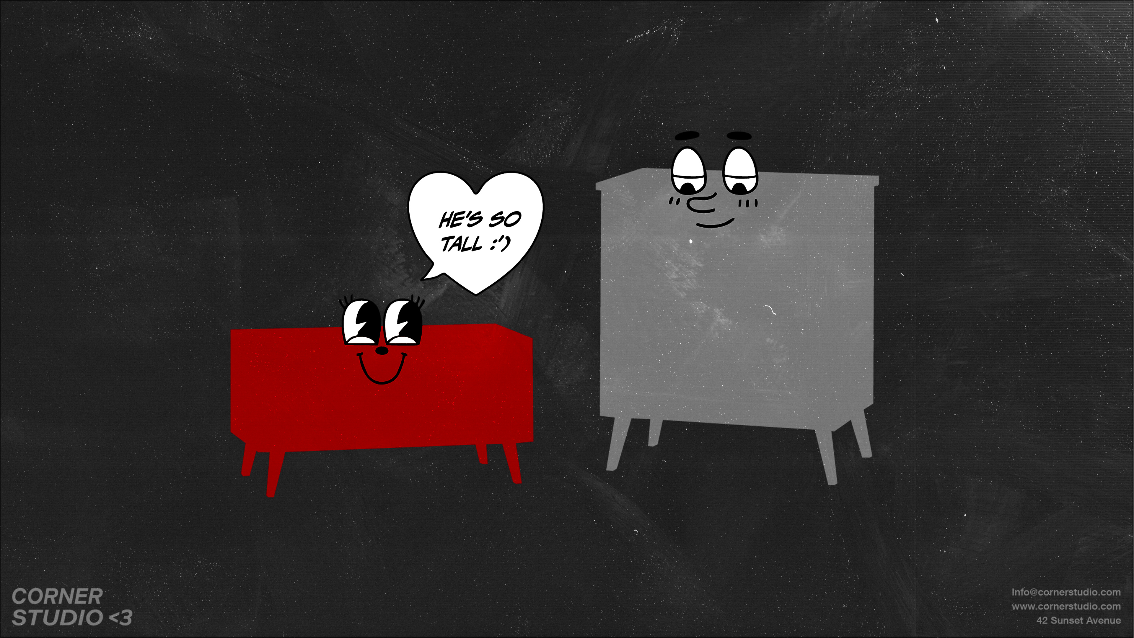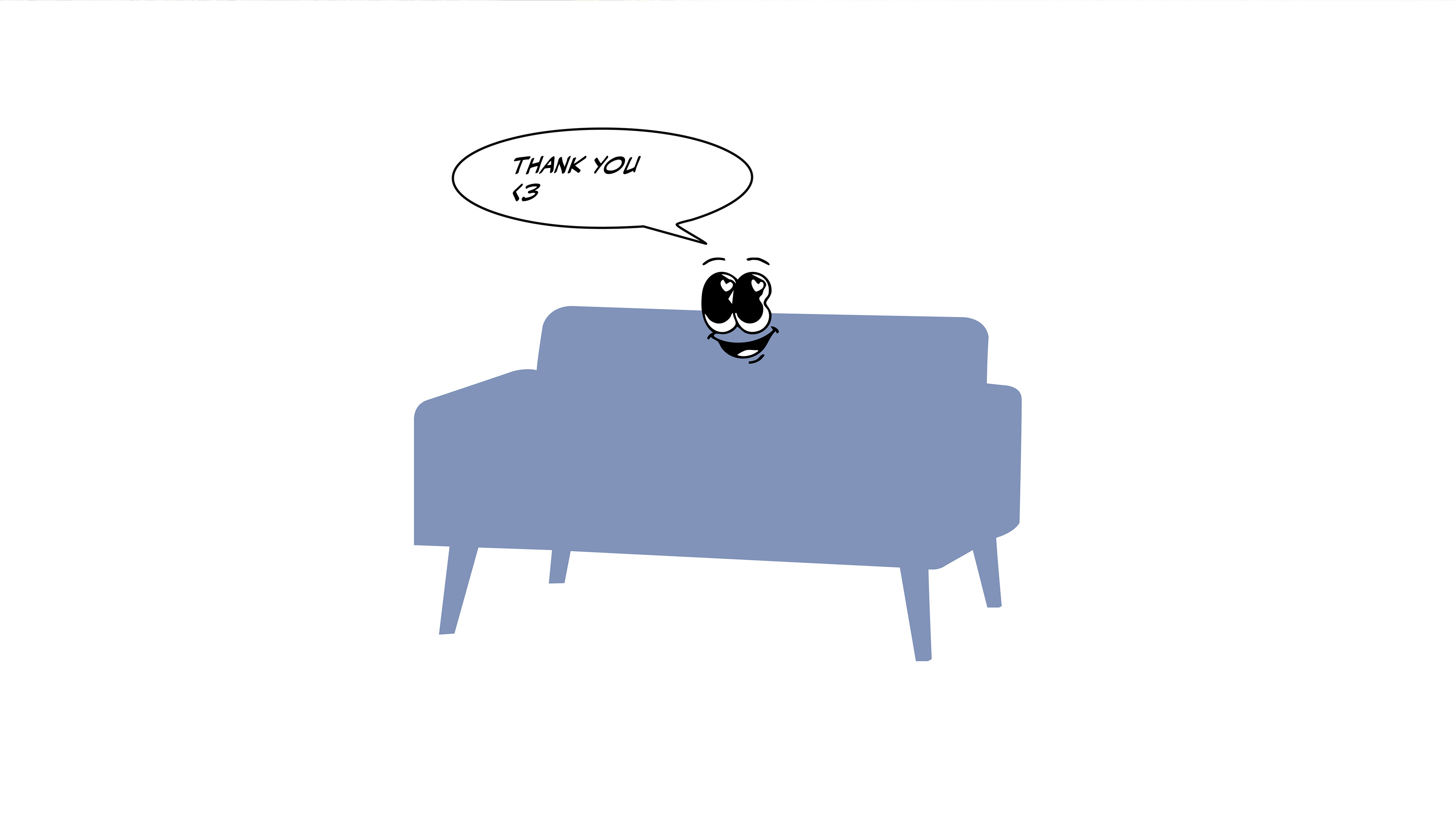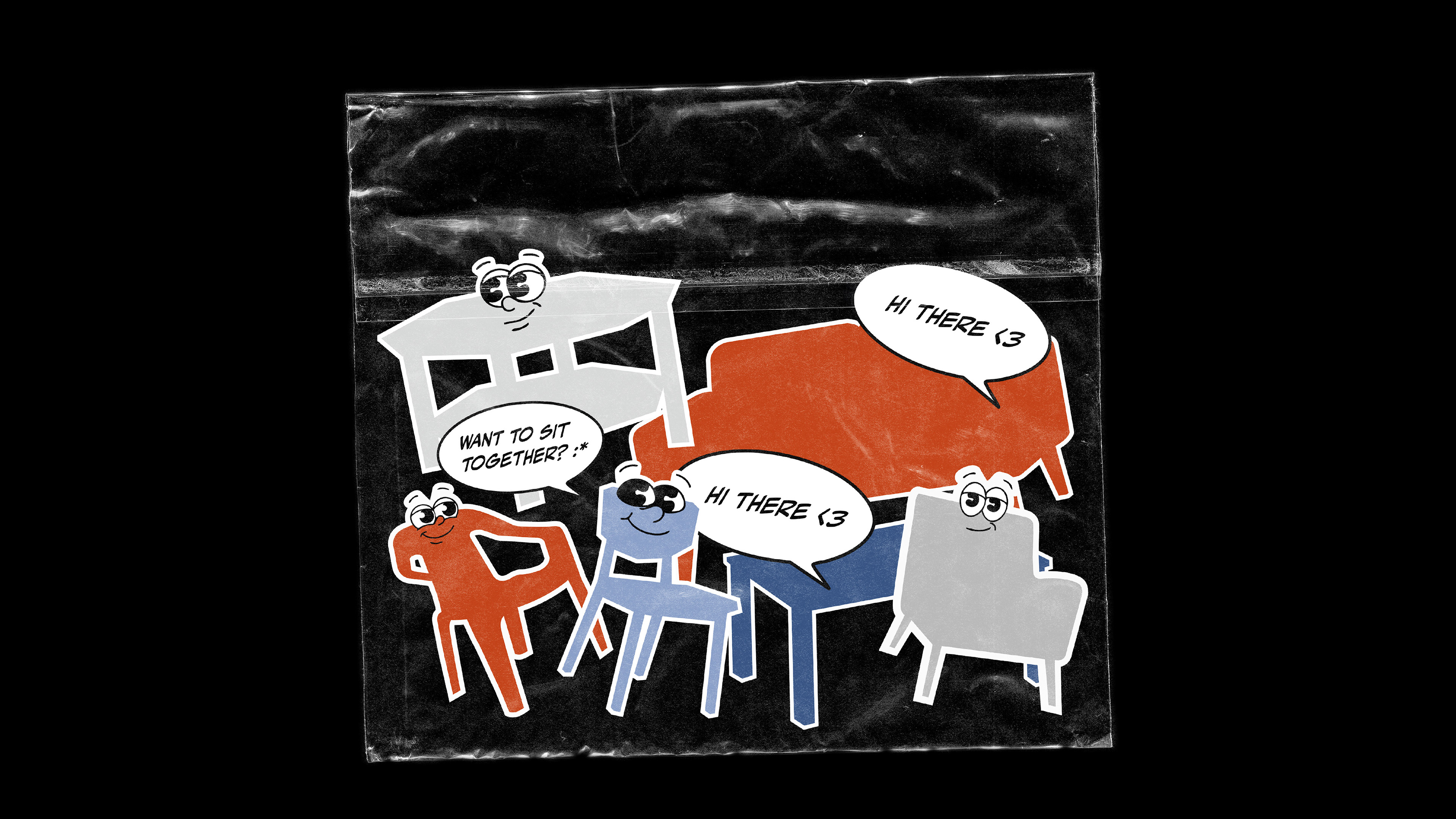 Simple emoticons and illustrated furniture characters make the brand approachable and relatable, giving everyday objects a voice and personality.