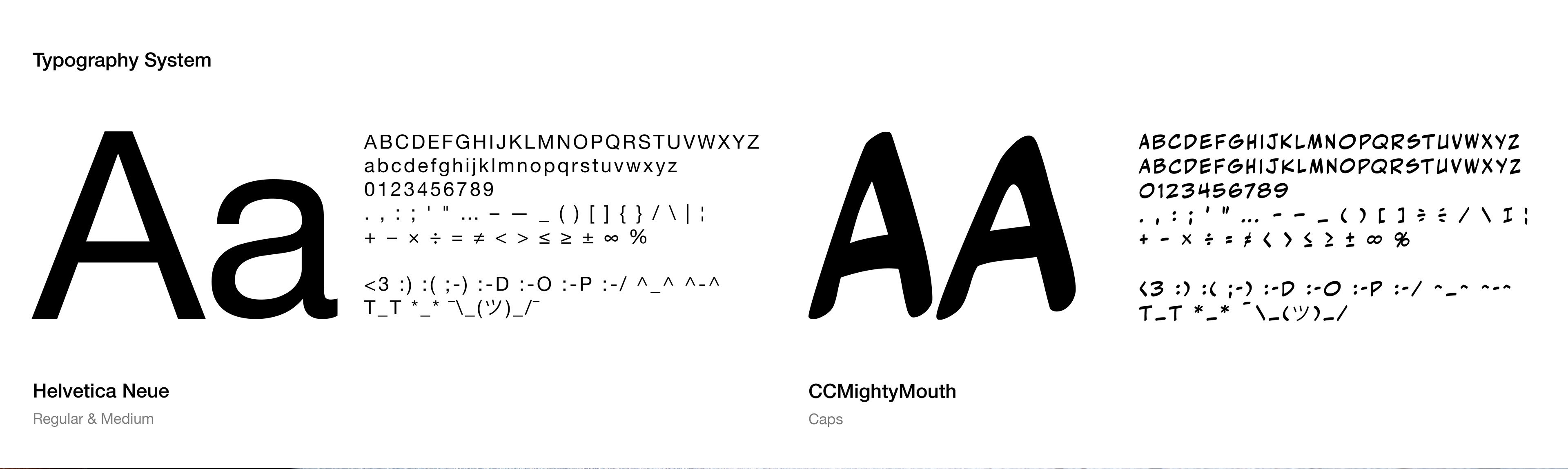 This balance between structure and warmth defines the entire brand: Helvetica Neue brings clarity and order, while CC MightyMouth adds a playful human tone.