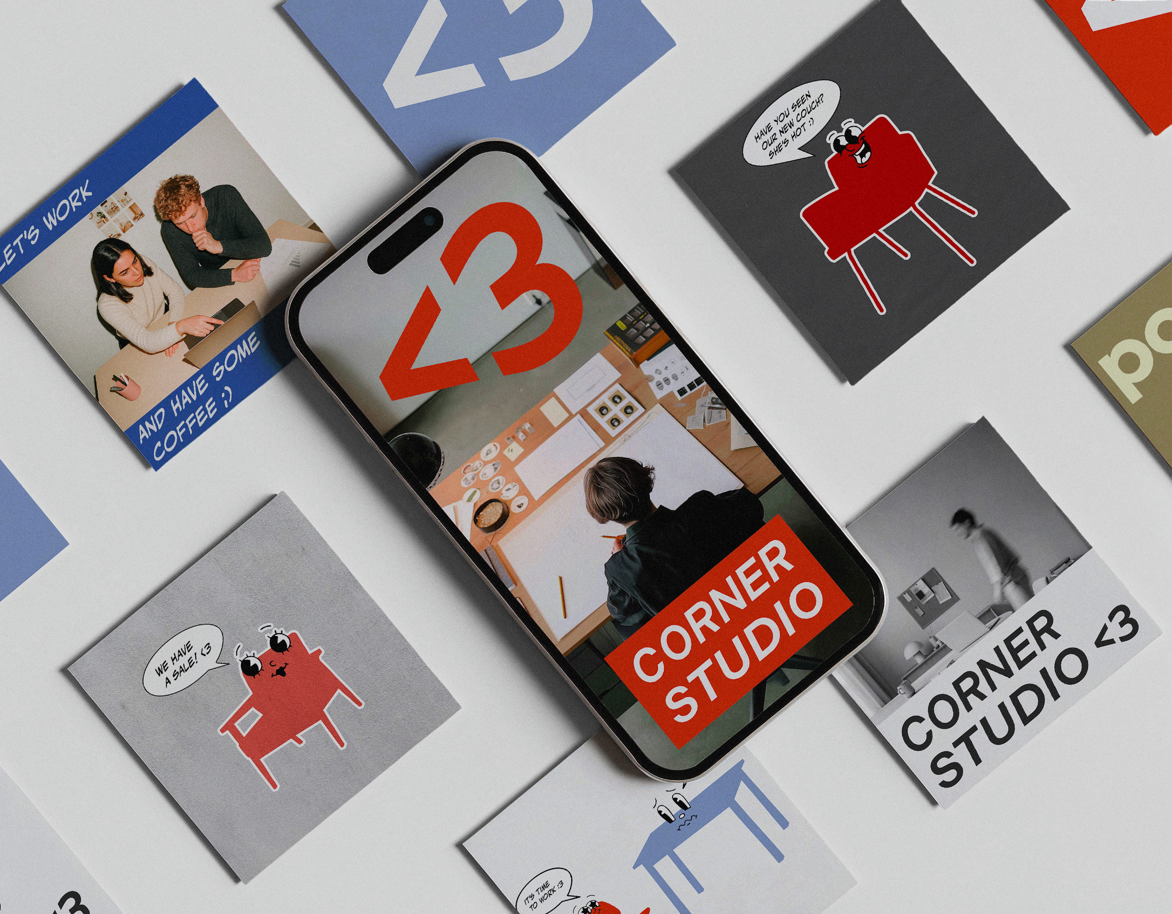 Corner Studio <3 is a visual identity project for a small neighborhood furniture shop that values authenticity, friendliness, and trust.