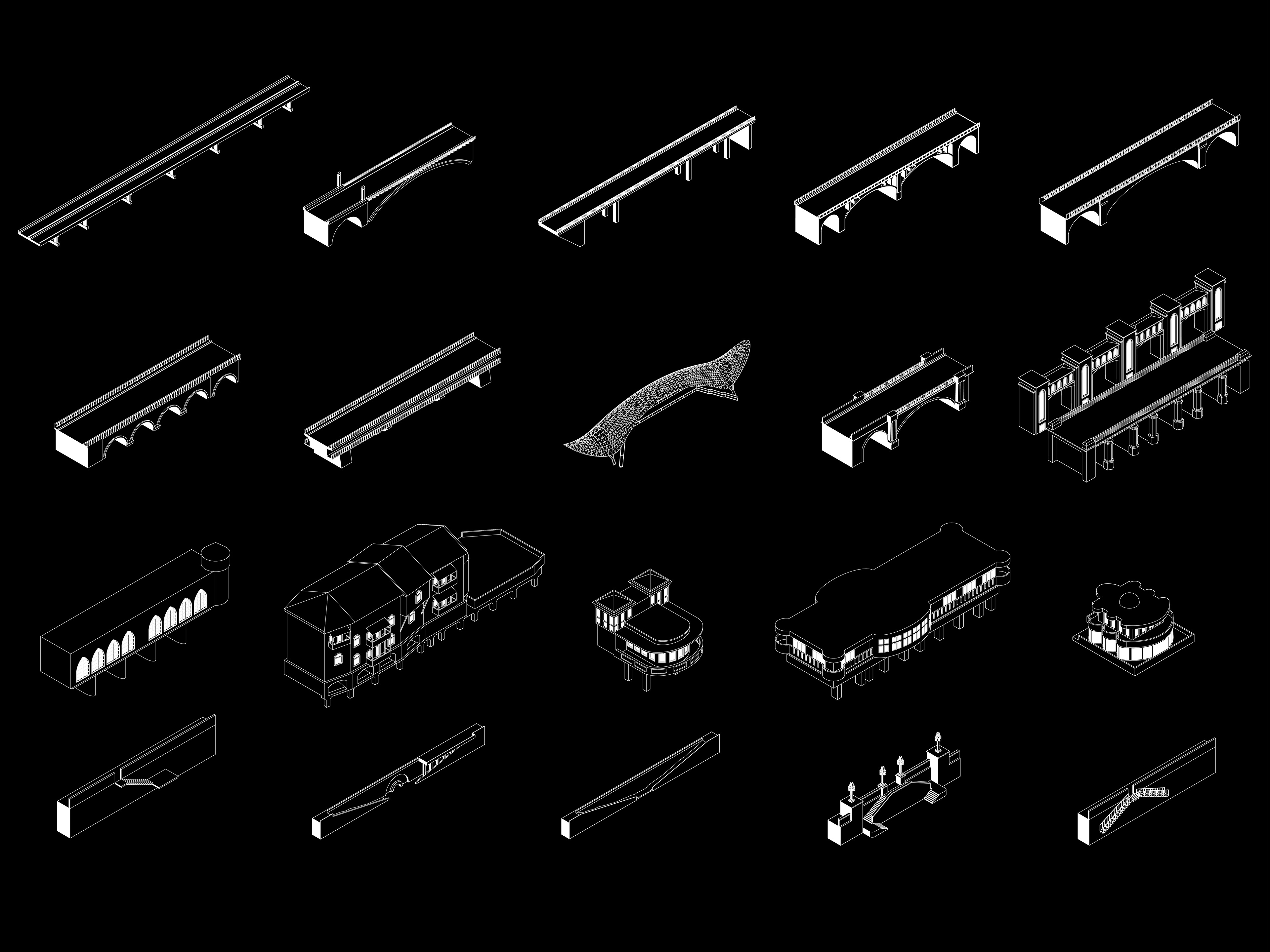 River Objects in Tbilisi - Objects located on the river often express a city's relationship with the river, so it is important to investigate both existing objects and old historical objects that have survived only through archives. The image shows present-day objects near Tbilisi's Mtkvari River, influencing daily interactions with the water. A large part of the objects are infrastructural: bridges, unused platforms that should have been boat stops, hydroelectric stations.