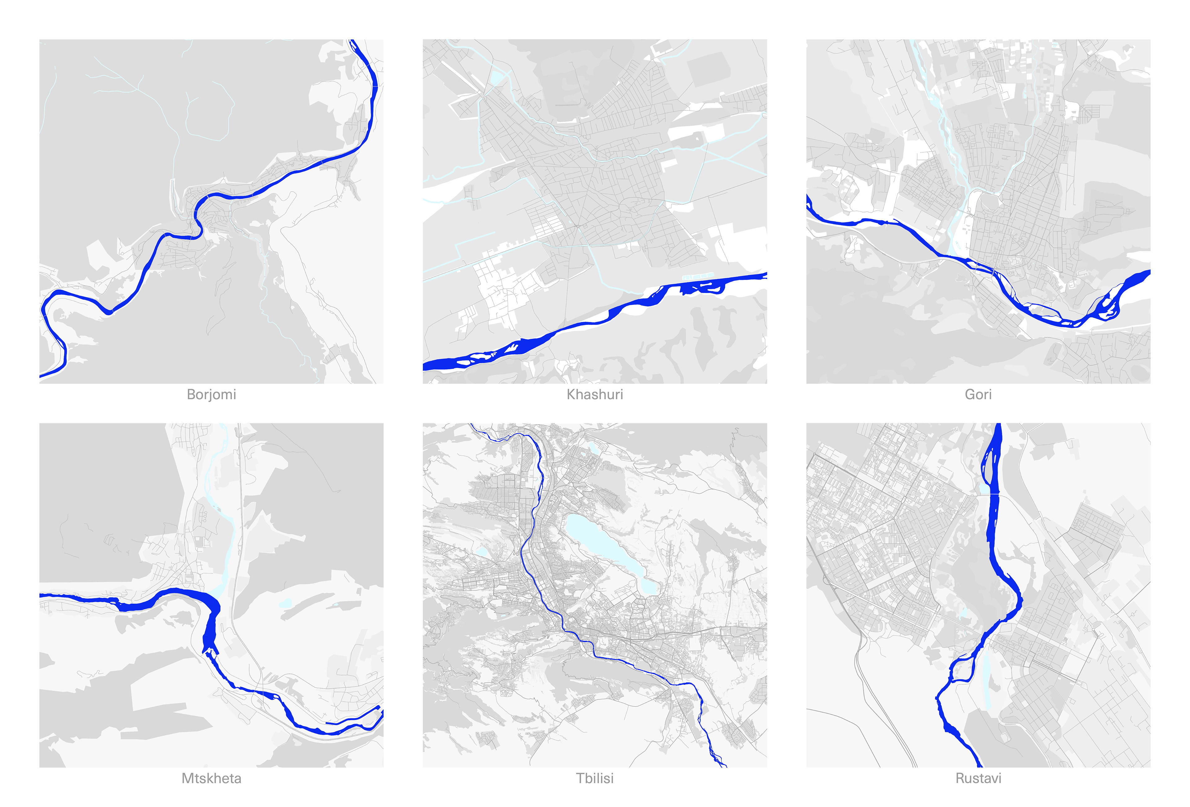River Cities along the Mtkvari in Georgia - Rivers form and define the urban structure as an important aspect of urban geographic surroundings. They influence not only the establishment and growth of numerous settlements, but also the aesthetic, artistic, geometrical and architectural quality of urban forms, as well as the practicality and scale of cities.